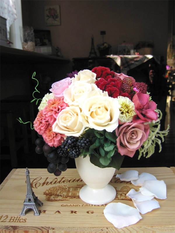 受賞者: 望月 抽希子 様 (愛知県) *第1回AUBEプリザーブドフラワーコンテスト最優秀賞受賞。