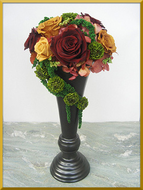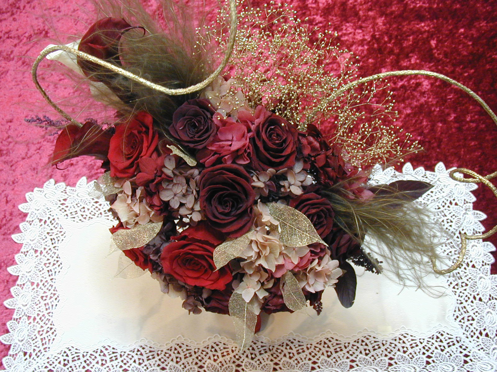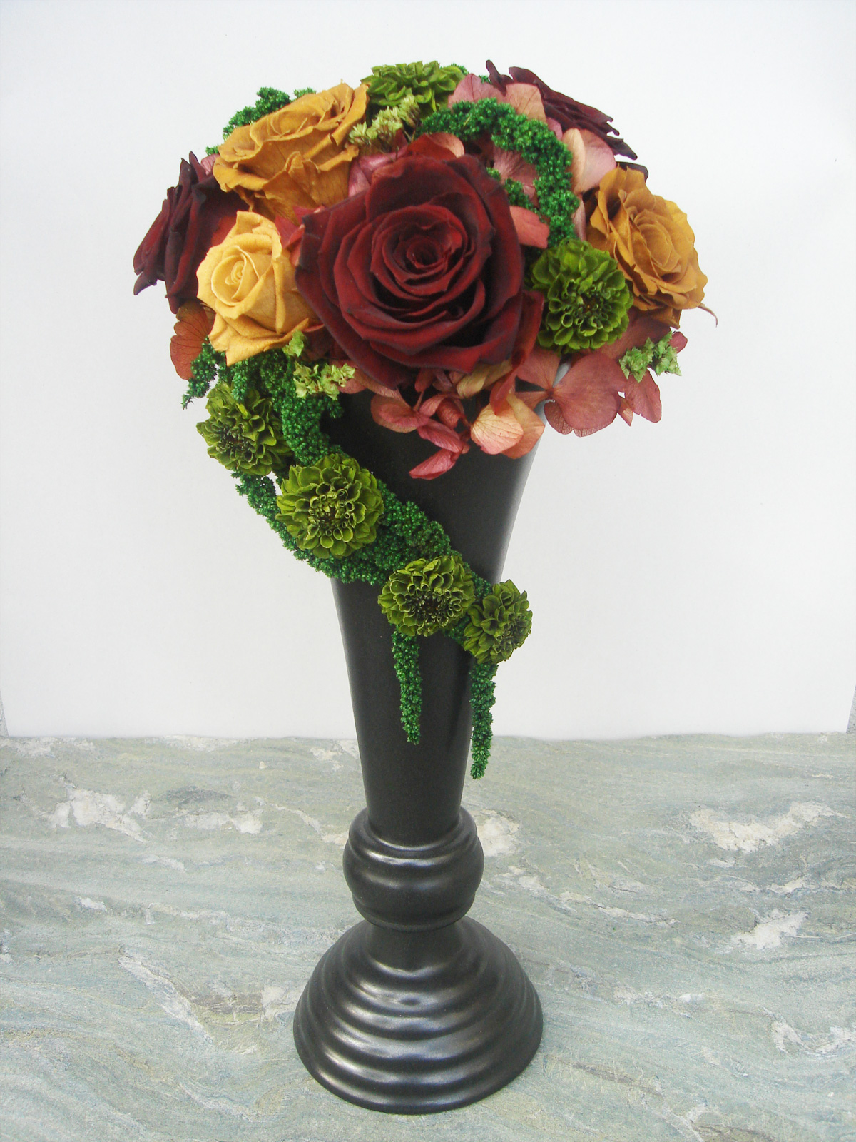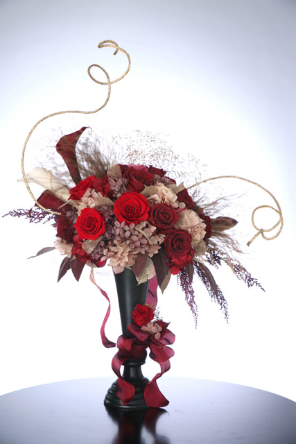 ・沢山の花材を使用し、華やかでゴージャスにまとまっています。
