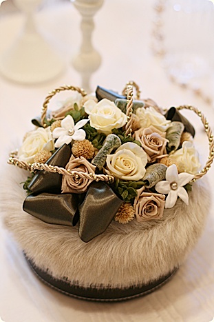 ファーやゴールドを使用する事でシックな色合わせですがとてもゴージャスで華やかです。