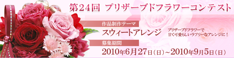 対象花材(VERDISSIMO プリンセスローズ)と対象花器(ミニハートフレーム)を使い、プリザーブドフラワーをメインにしたギフトとして最適な作品。また、その他の花材、資材等は、ご自由にお使い下さい。一人何作品でも奮って応募して下さい。