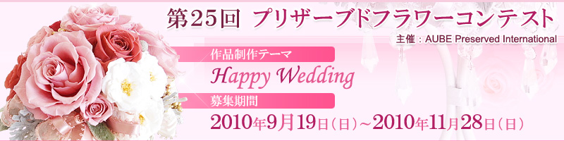 対象花材(花材ページで掲載されているプリザーブドフラワー<ローズ、カーネーション、ジャスミン、ブルースター、プルメリアetc>)と対象花器(花材ページで掲載されている花器)・資材(花材ページで掲載されている資材)を使い、プリザーブドフラワーをメインにしたギフトとして最適な作品。また、お手持ちの花材、資材等は、ご自由にお使い下さい。一人何作品でも奮って応募して下さい。