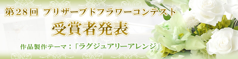 2011年6月29日(水)〜2011年9月4日(日)に行われた、第28回AUBEプリザーブドフラワーコンテスト開催から締め切りまでの間、本当に沢山のご応募を頂きました。どの作品もそれぞれとても素晴らしく審査も非常に難航しましたが、厳選なる審査の結果、最優秀賞1点、優秀賞2点が決定致しました。見事、受賞された3名の方々、真におめでとうございます。