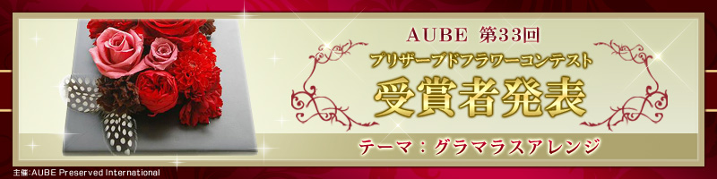 2012年12月23日(日)〜2013年3月24日(日)に行われた、第33回AUBEプリザーブドフラワーコンテスト開催から締め切りまでの間、本当に沢山のご応募を頂きました。どの作品もそれぞれとても素晴らしく審査も非常に難航しましたが、