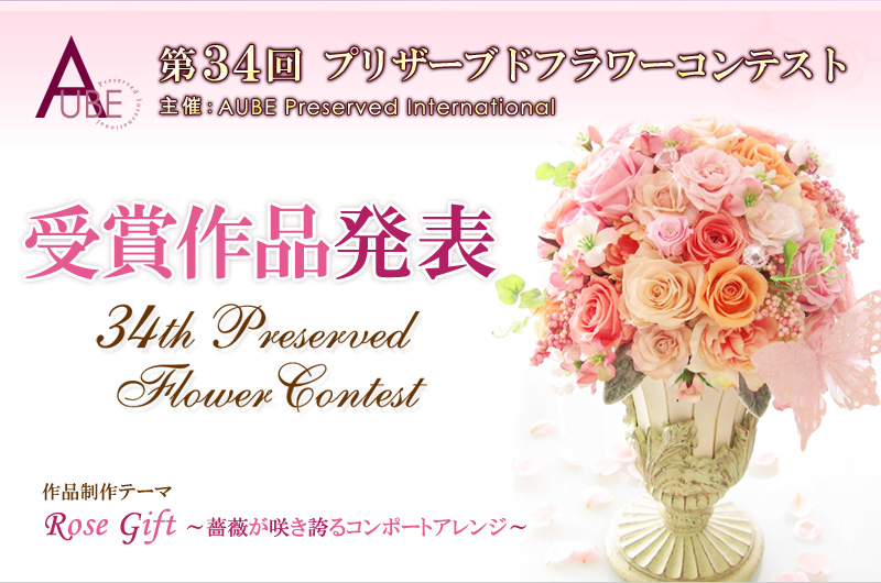 2013年5月26日(日)〜2013年8月11日(日)に行われた第34回AUBEプリザーブドフラワーコンテスト開催から締め切りまでの間、本当に沢山のご応募を頂きました。どの作品もそれぞれとても素晴らしく審査も非常に難航しましたが、