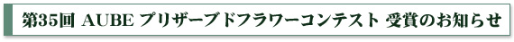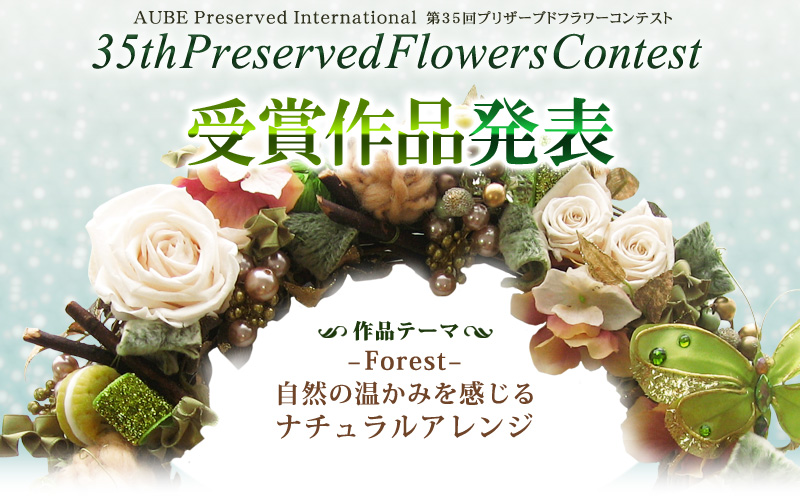 2013年9月29日(日)〜2013年11月24日(日)に行われた第35回AUBEプリザーブドフラワーコンテスト開催から締め切りまでの間、本当に沢山のご応募を頂きました。どの作品もそれぞれとても素晴らしく審査も非常に難航しましたが、厳選なる審査の結果、最優秀賞1点、優秀賞2点が決定致しました。見事、受賞された3名の方々、誠におめでとうございます。
