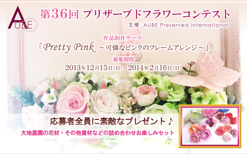 AUBEにて、上記対象花材・対象リボン・花器をコンテスト募集期間中にご購入いただいている方。 |