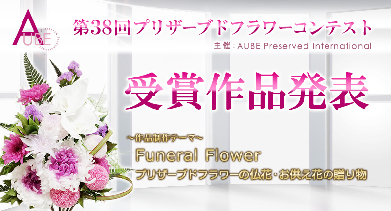 2014年7月13日(日)〜2014年9月28日(日)に行われた第38回AUBEプリザーブドフラワーコンテスト開催から締め切りまでの間、本当に沢山のご応募を頂きました。どの作品もそれぞれとても素晴らしく審査も非常に難航しましたが、厳選なる審査の結果、最優秀賞1点、優秀賞2点が決定致しました。見事、受賞された3名の方々、誠におめでとうございます。