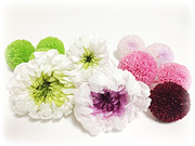 | 花材コーナーにて販売の大地農園の菊 (ピンポンマム、ことね菊、輪菊、小菊の中から一種類は必須) |