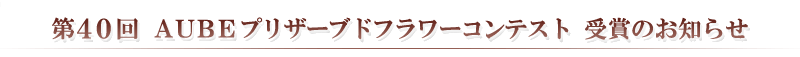 2015年4月5日(日)〜2015年8月2日(日)に行われた第40回AUBEプリザーブドフラワーコンテスト開催から締め切りまでの間、本当に沢山のご応募を頂きました。どの作品もそれぞれとても素晴らしく審査も非常に難航しましたが、厳選なる審査の結果、最優秀賞1点、優秀賞2点が決定致しました。見事、受賞された3名の方々、誠におめでとうございます。