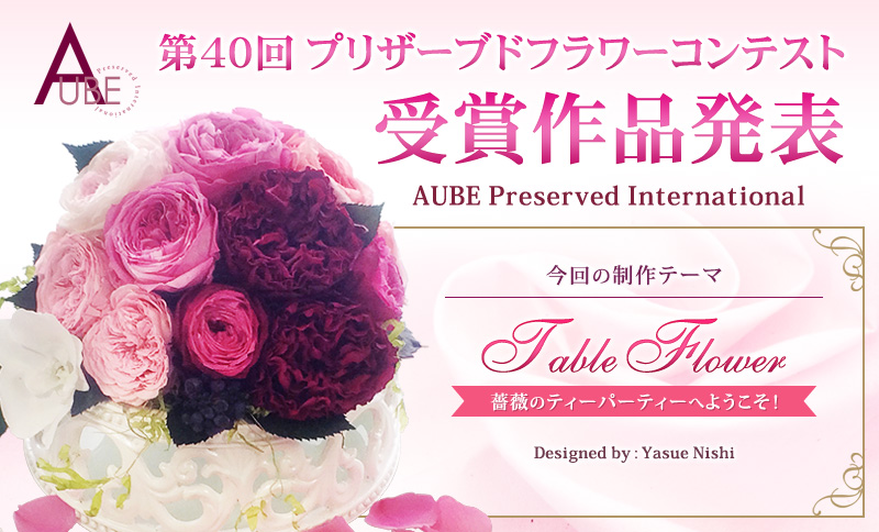 今回、惜しくも入賞に届かなかった方々も、ご応募いただきまして誠にありがとうございました。第41回コンテストも皆様の参加を心よりお待ちしておりますので奮ってご応募ください。気になる第41回AUBEプリザーブドフラワーコンテストのテーマは…詳しくは下記コンテストページにて!