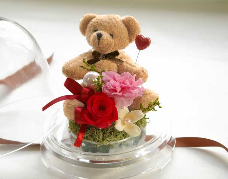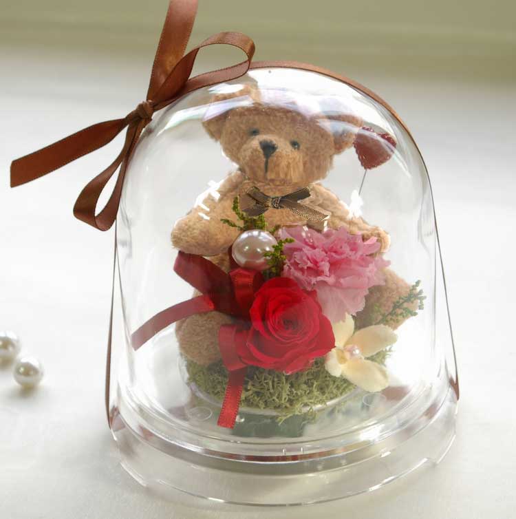 クリアドーム花器を使用していますので、いつまでもほこりのかぶることのなくお花を楽しんで頂けます♪